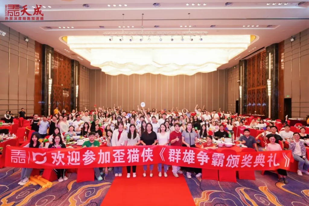 荣耀的集结,共同见证非凡时刻 2024年10月13日,群雄争霸颁奖典礼在东莞隆重举行,57家参赛企业齐聚一堂,共同见证这一荣耀时刻。主办方天成公司精心策划,现场那一排排陈列的奖杯和证书,旨在表彰各企业在30天艰苦奋斗中所取得的卓越成就,表达了对他们的刻苦努力和显著成果的高度认可。 群雄逐鹿,业绩飞跃 在群雄争霸大战中,六个军团激烈竞争。”羽毛球王者”军团以407.14%的新